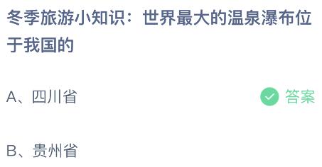 界最大的温泉瀑布位于我国的哪个省?蚂蚁庄园