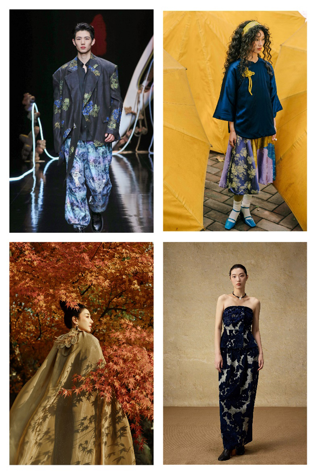 众星闪烁,引出中国时髦财产百花齐放的一派盛景。做为东方美学的现代发觉者,破例将优良的非物质文化遗产通过现代手法使用于服拆财产出产制做中,彰显中国美学、中国设想的文化底色;TANGY Collection、HUANGGANG、莨拾捌、荷木HEMU以喷鼻云纱面料为创做素材,付与陈旧的手工身手正在未界新的生命力。丝绸、锦缎、绢、绡、羊毛、羊绒等天然纤维正在设想师的巧思下展示东方元素的内敛取宛转;SHIJIE诗简、王紫菲ZIFEIWANG、TUYUE涂月、荷言HEYEN、icut关心保守服饰正在现代语境下的承续,以现代感的高级时拆连系中国文化美学的文雅内涵,连系东方美学的包涵性和刚柔并济,塑制具有现代潮水的新时代文化;德锦华服、薰喷鼻、天玺、金枝玉葉、花木深则让保守东方艺术及精深制做工艺回归现代糊口,暮云灰、天水碧、松花色等吉利色的多元化使用,海水江崖纹、云纹、、等保守纹样,凸起了符号深处的中国保守价值不雅;上久楷、靓诺、谦山ThreeIn All、关雎记、喷鼻黛宫从新时代的视角立异演绎中国文化和非遗工艺,以极致而多元的时髦立场对现代艺术、数智时髦、零碳环保精髓进行设想再创,呈现形形色色的前锋姿势。节目中,浩繁品牌华美服饰接力绽放,一场中国设想多元气概大秀点燃现场,呈现形形色色、美美取共的时髦盛宴。